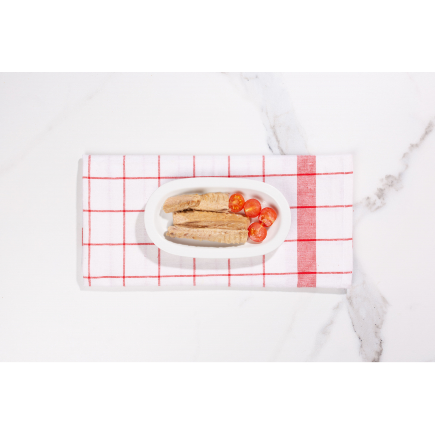 INGREDIENTES: Filetes de melva de almadraba (Auxis rochei), aceite refinado de girasol y sal.