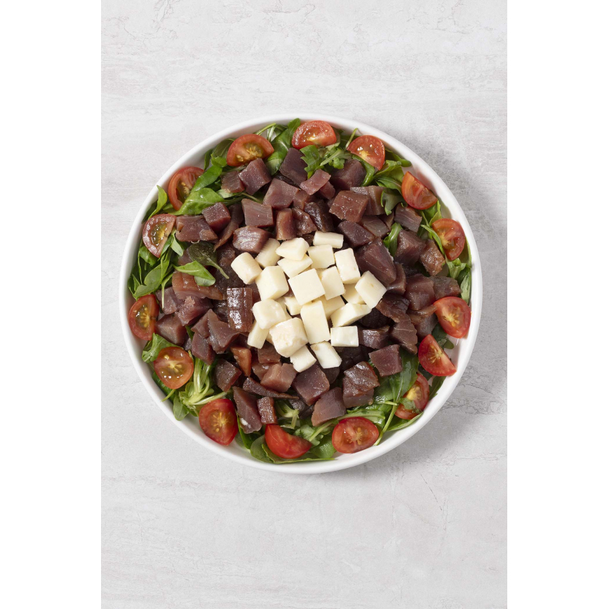 Ensalada de atún ahumado y queso en aceite refinado de girasol